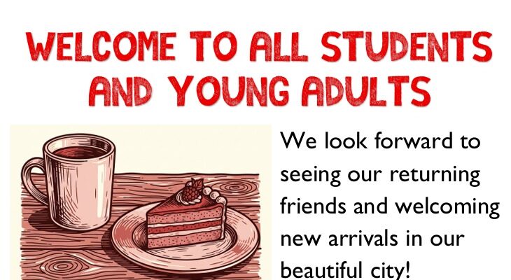 STUDENTS & YOUNG ADULTS: We extend a very warm welcome to all students and young adults, and we will hold a series of special events throughout the year for them to get to know each other better. For more information see https://stpetersedinburgh.org/students-young-adults