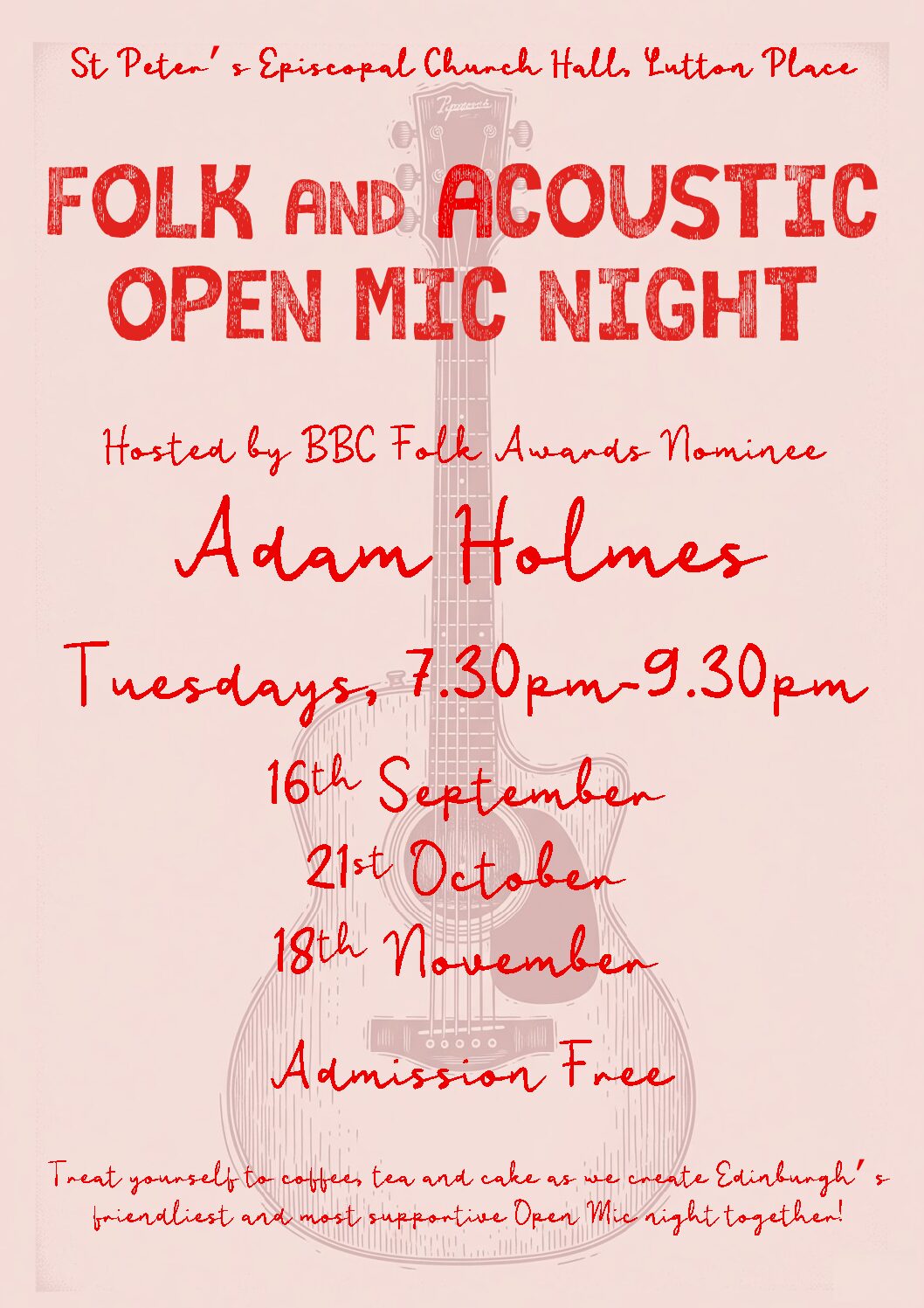 All are very welcome to our Folk and Acoustic Open Mic Nights, all hosted by Adam Holmes, one of Edinburgh’s finest folk and roots musicians and BBC Folk Awards Nominee.